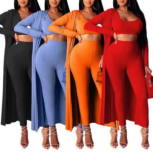 New Elasticity knit High Waist Trousers and Sexy Crop Top Women Two Piece Set