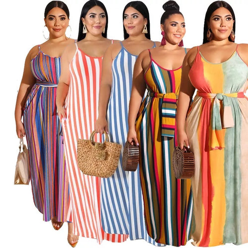 Plus Size women Clothing sleeveless striped Long Women Bandage Dress